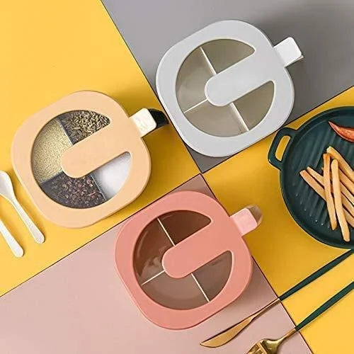 • 4 in 1 Partition Kitchen Seasoning Spice Box with Spoons for kitchen organization.